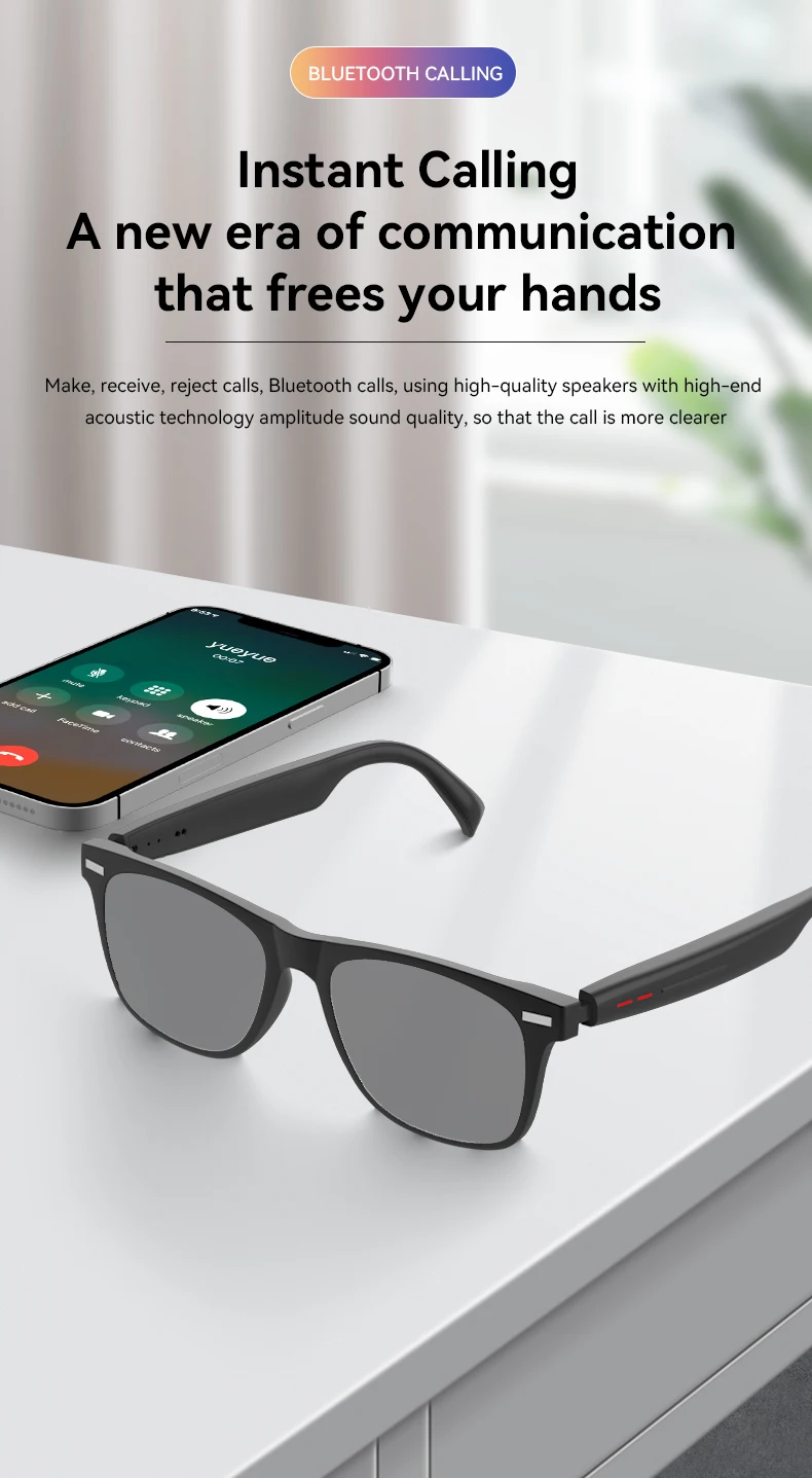 Stereo noise-canceling microphone: This wireless radio connection 5.3 has a wide range of compatibility. Smart sunglasses have a built-in noise-canceling microphone so you can make and receive calls.